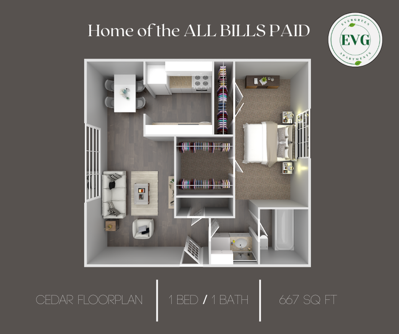 EVERGREEN APARTMENTS HOME OF THE ALL BILLS PAID!